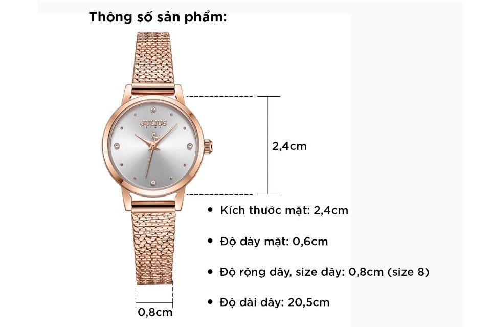 Đồng hồ nữ Julius Star JS-045 Kính Sapphire - Size 25